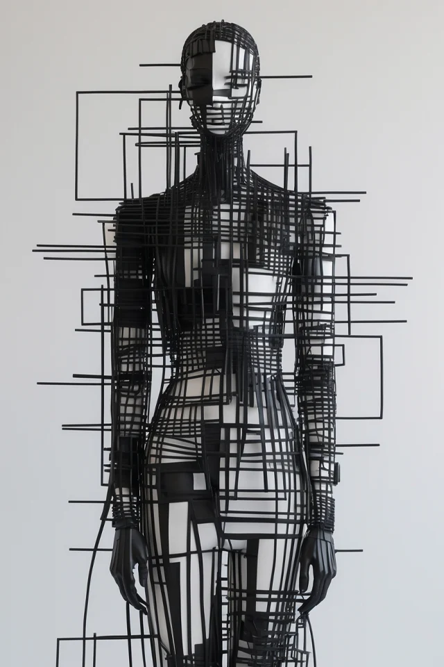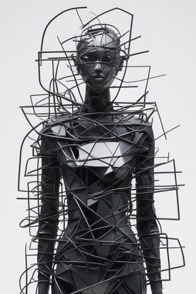 Las variaciones que presento en esta colección son el resultado de esa obsesión por el detalle. Hay una danza entre la fragilidad de un hilo negro y la fuerza de una estructura geométrica que se niega a colapsar. He alargado las formas, difuminado los rostros y acentuado el vacío, porque en el arte —como en la vida— lo que no se dice es a menudo lo que más pesa.