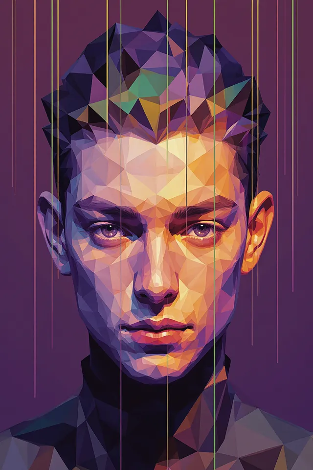 “Geometría del Rostro Digital” es una reflexión sobre la complejidad de la identidad contemporánea. En un mundo donde estamos constantemente expuestos a fragmentos de información y a la interacción con lo digital, nuestra esencia se compone de múltiples facetas. Esta obra invita al espectador a mirar más allá de la superficie y a reconocer la belleza y el dinamismo en la abstracción de la forma humana. Es un rostro universal, a la vez familiar y desconocido, que representa cómo la tecnología y el arte pueden revelar nuevas dimensiones de lo que significa ser humano.