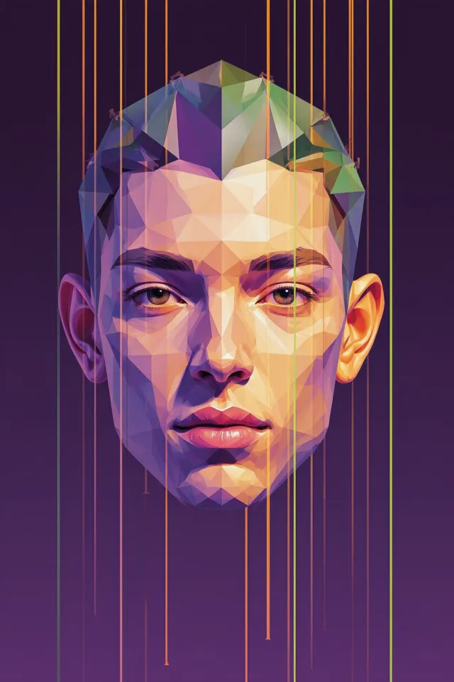 Con “Geometría del Rostro Digital”, mi intención fue explorar la esencia de la identidad en un mundo fragmentado, utilizando la abstracción para ir más allá de la representación literal. ¿Cómo se vería un rostro si sus emociones y pensamientos se manifestaran en formas puramente geométricas y colores vibrantes?