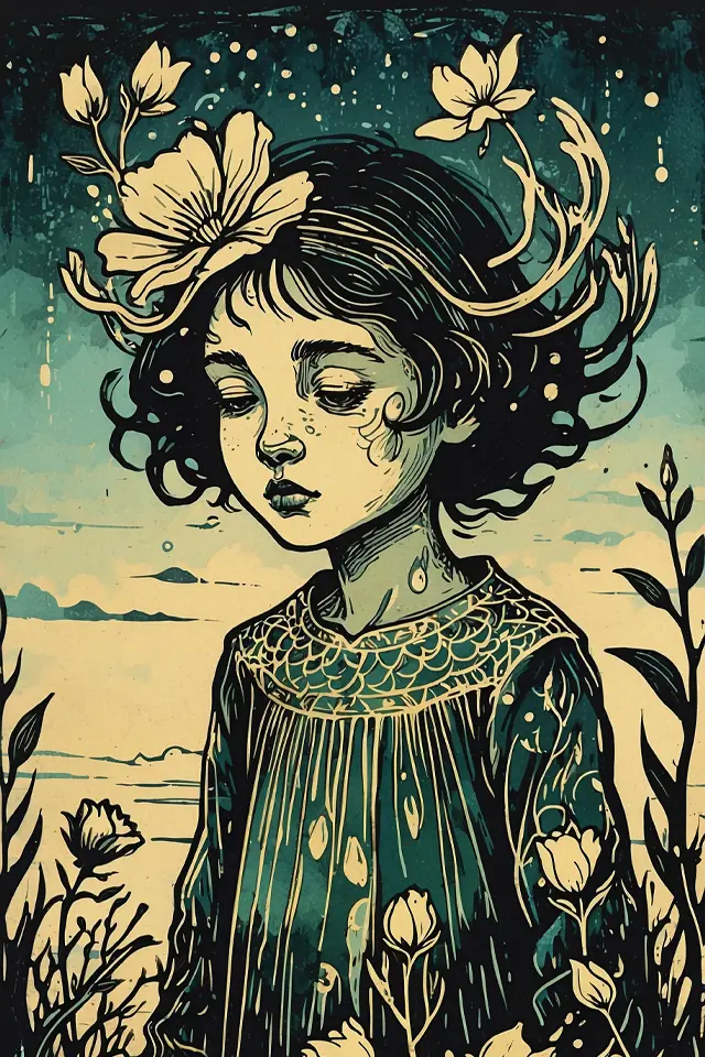 La obra nace de una meditación sobre la custodia de la belleza y el cuidado tierno que requiere la etapa inicial de cualquier proceso creativo o vital. Decidí utilizar una paleta de tonos tierra y colores planos para dotar a la escena de un ambiente de misterio y magia que se sintiera intemporal y conectado a la naturaleza.