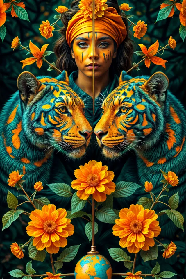 “Reina Quimbaya” es una reflexión sobre el poder inmutable de la herencia y la capacidad del arte digital para honrar el pasado. La obra nos invita a ver la belleza en la fusión de lo ancestral y lo futurista. La Reina, con su porte sereno y su vestuario de alta costura, es un recordatorio de que la identidad y la fuerza de una cultura se manifiestan de formas eternas, y que el legado del oro y la fauna colombiana son la corona de nuestra modernidad.